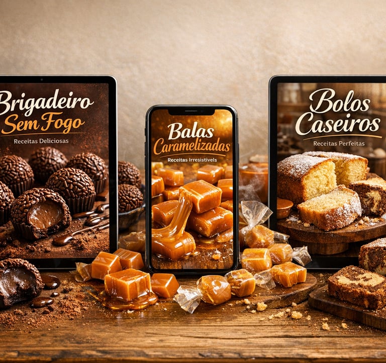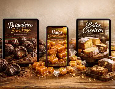 Receitas extras para brigadeiro, balas caramelizadas e bolos caseiros.