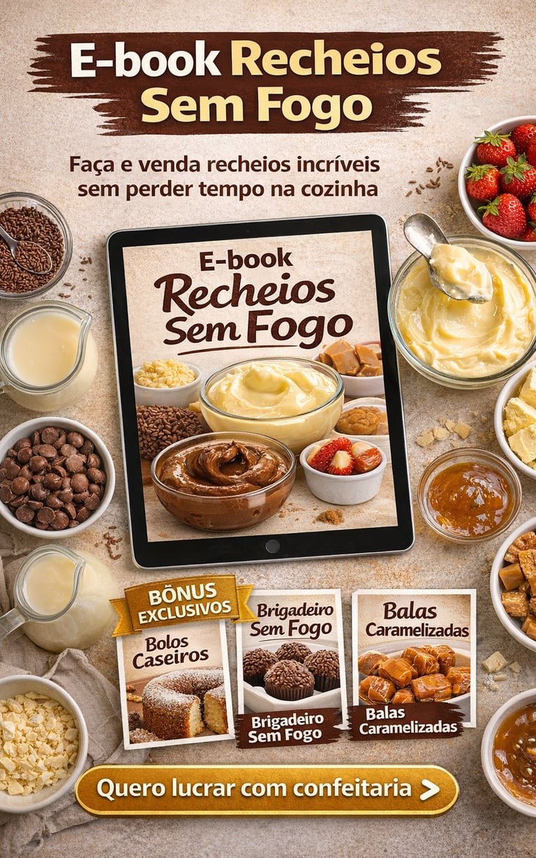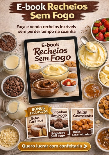 Então presta atenção: com este eBook, você vai aprender a fazer recheios irresistíveis, 100% sem fogo, que encantam o paladar e vendem sozinhos!